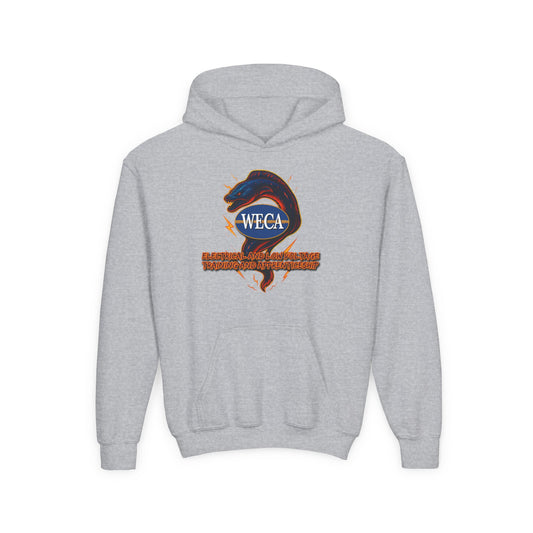 YOUTH Heavy Blend Hooded Sweatshirt with WECA Electric Eel Blue Design
